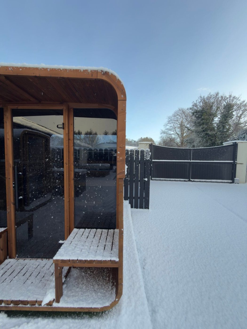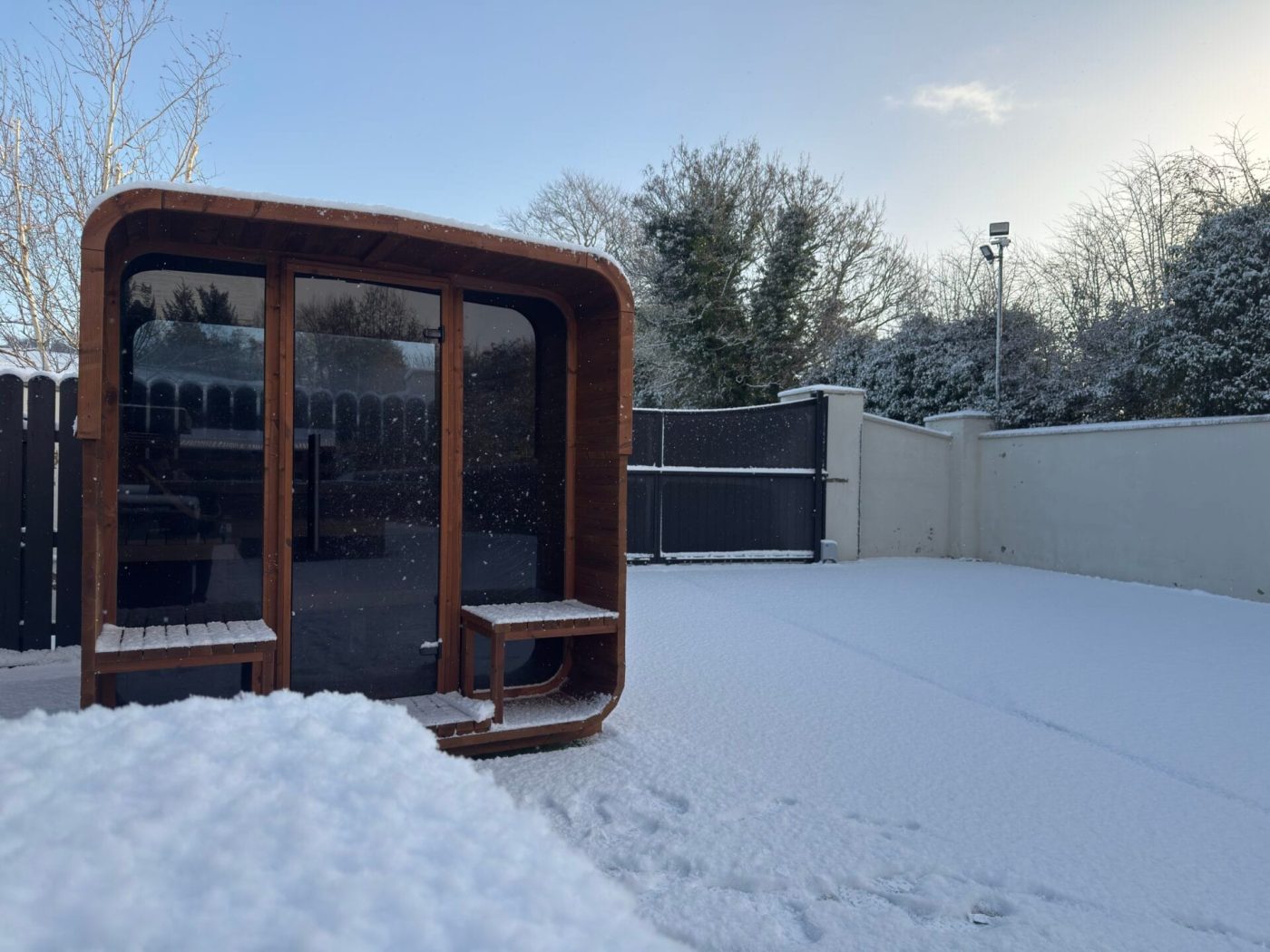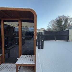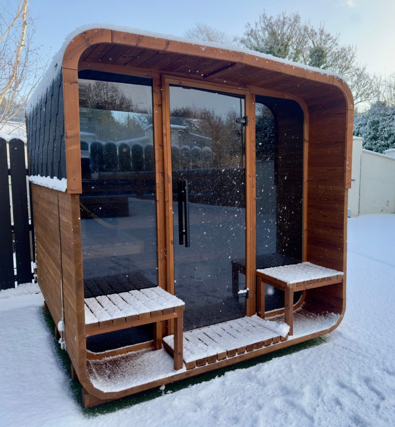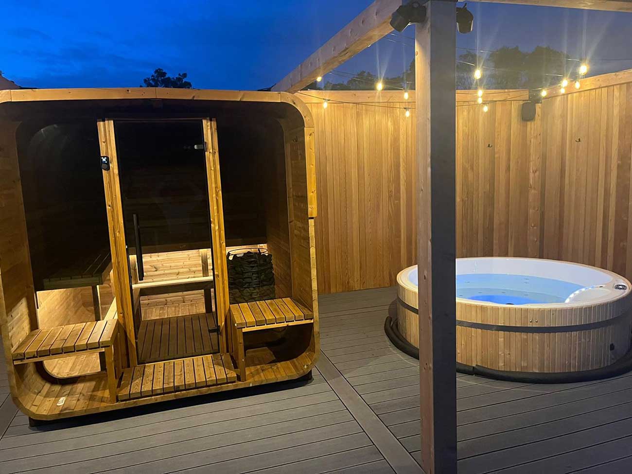 The Aura’s standout feature is its welcoming porch with built-in benches—a perfect retreat for relaxation before or after your sauna session. This additional space adds a touch of elegance and functionality, making the Aura not just a sauna but a lifestyle enhancement.