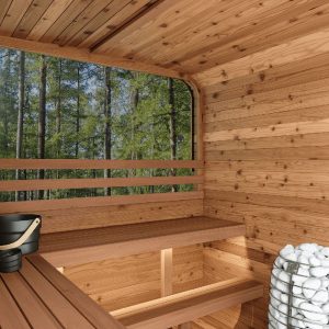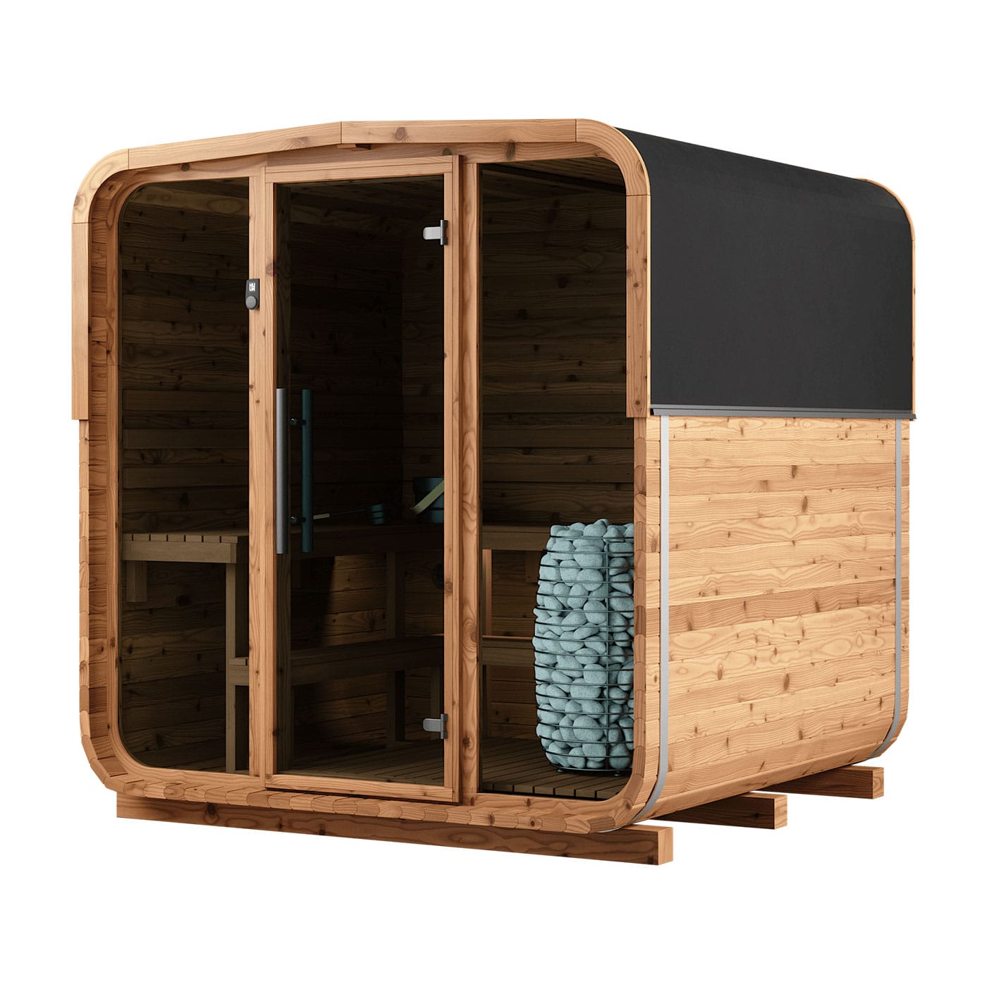 Sola’s sleek, square shape with rounded edges showcases a modern aesthetic that complements any outdoor setting. Not only does its design look great, it also promotes consistent heat distribution within the sauna.