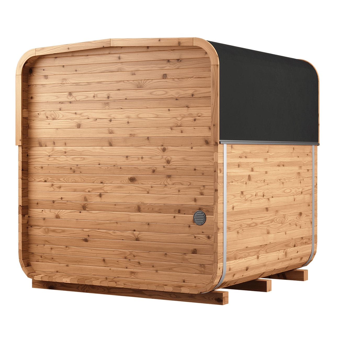 Discover the charm of the Sola barrel sauna, where modern design meets serene comfort. Crafted from high-quality thermally modified spruce, this outdoor sauna stands out with its robust construction and elegant square shape.
